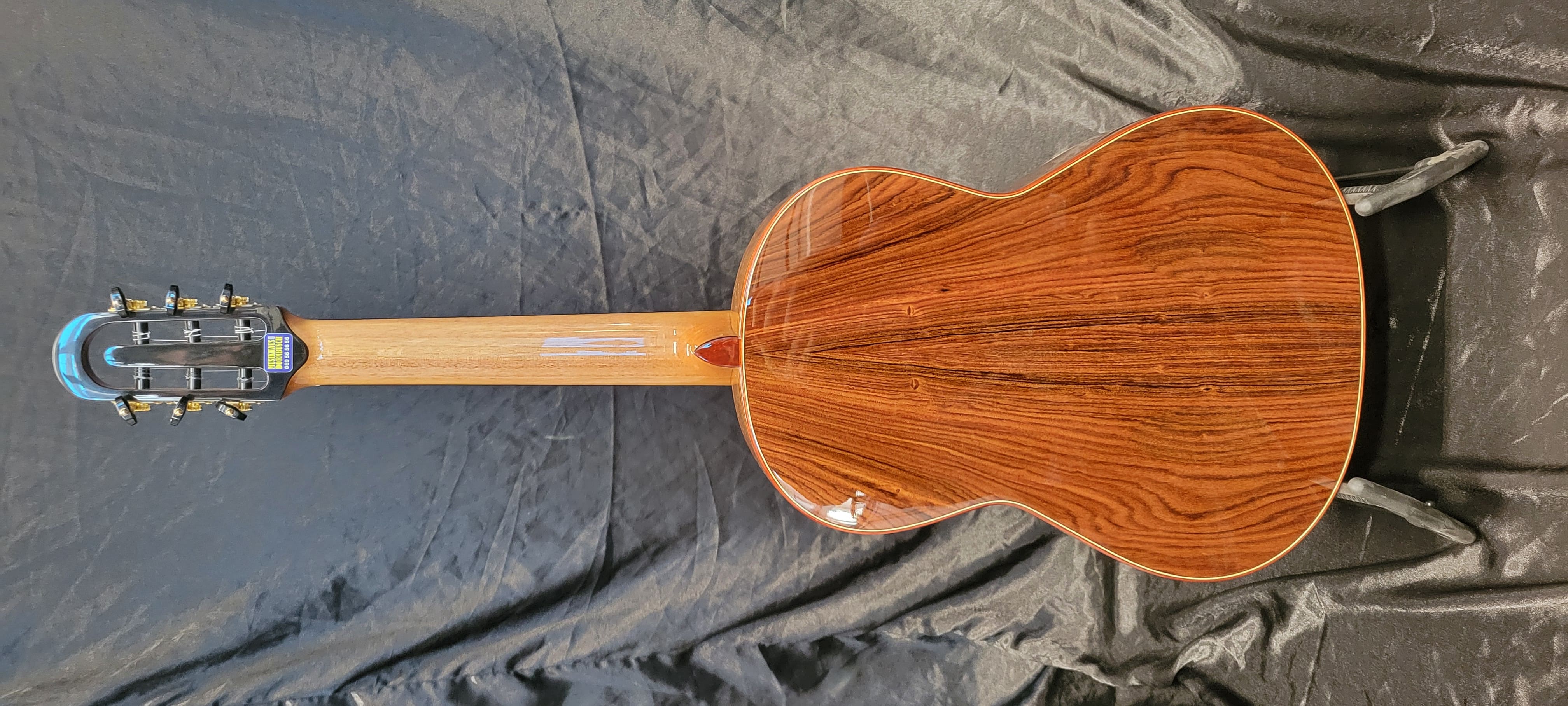Bei der Doubletop-Konstruktion handelt es sich um eine relativ neue Technik, bei der eine Wabenfaser zwischen zwei sehr dünnen Resonanzböden eingeklemmt wird. Dadurch wird das Gewicht drastisch reduziert, aber die notwendige Steifigkeit beibehalten. Das Ergebnis sind sehr reaktionsschnelle und kraftvolle Instrumente, die einen großen Dynamikbereich haben. Die Gitarren haben eine exzellente Projektion und Sustain, die Klangfarben und die Fülle sind erstaunlich. Natürlich sind zwei Resonanzböden erforderlich, so dass die Möglichkeit, Fichte und Zeder zu kombinieren, um ihre Charaktere zu vereinen, sehr spannend ist.