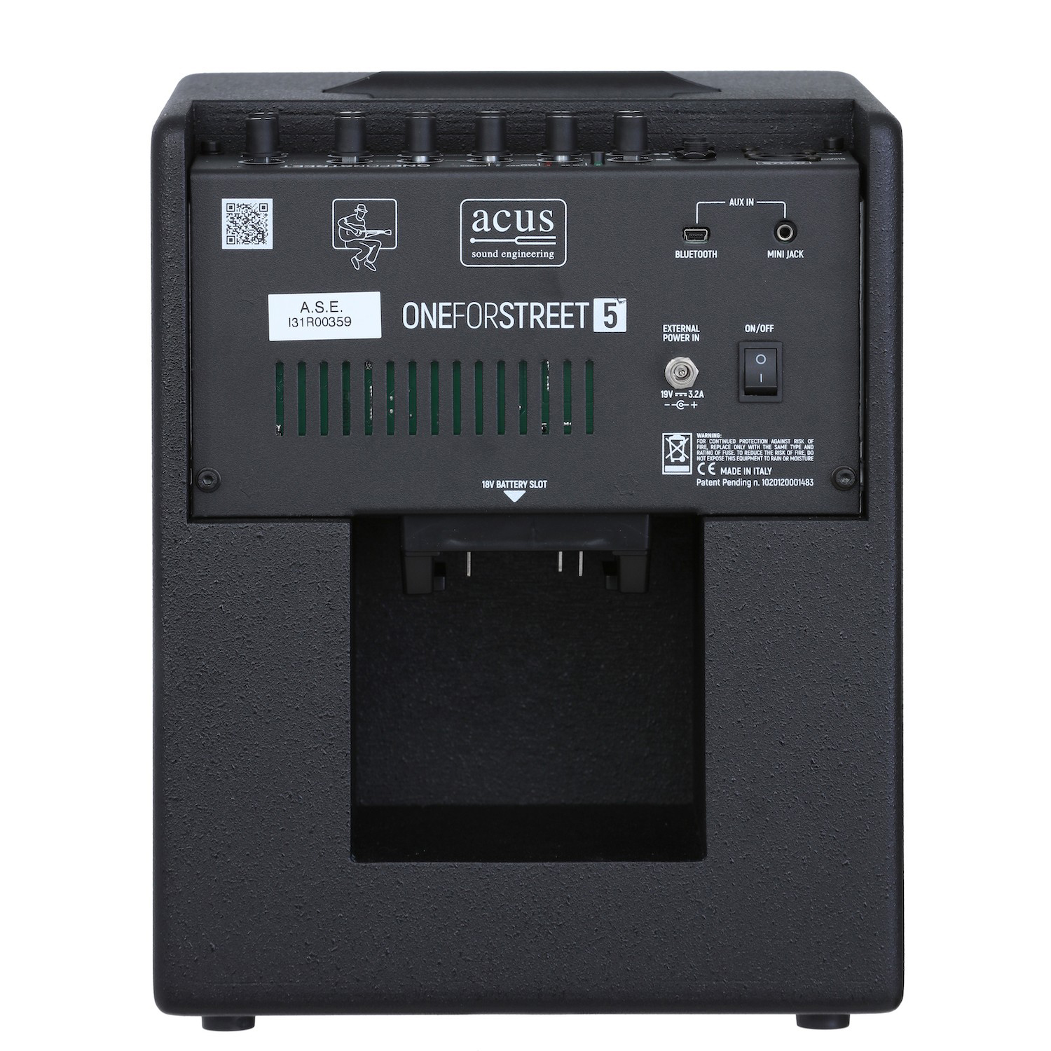 - Eingänge: 6,3 mm Klinke + XLR (Kanal 1), 6,3 mm Klinke (Kanal 2), 3,5 mm Klinke (Aux-In)