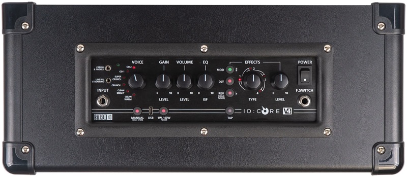 Die ID:Core V4 Verstärker sind mit 10W, 20W oder 40W Leistung erhältlich und aufgrund ihrer leichten Bauweise und integrierten Effekte sowohl für Anfänger als auch Profis geeignet. Der ID:Core 40 V4 bietet die gewohnt intuitiven Bedienelemente eines traditionellen Verstärkers, ist aufgrund seiner Programmierbarkeit aber deutlich vielseitiger. Über den Voice Regler lassen sich sechs verschiedene Sounds Clean Warm, Clean Bright, Crunch, Super Crunch, OD 1 und OD 2 aufrufen. In Kombination mit dem ISF Regler können diverse Sound von amerikanisch bis britisch und dazwischen eingestellt werden. Die Effektsektion des Amps erzeugt breite Stereo-Modulations, Delay- und Reverb-Effekte in Studio-Qualität. Mit der mitgelieferten Architect Software lassen sich über USB-C weitere Einstellungen vornehmen und abspeichern. Der Line In / Streaming Eingang ermöglicht, neben dem Abspielen von Musik, mithilfe eines 3,5mm Kabels das Streamen direkt über ein Smartphone.