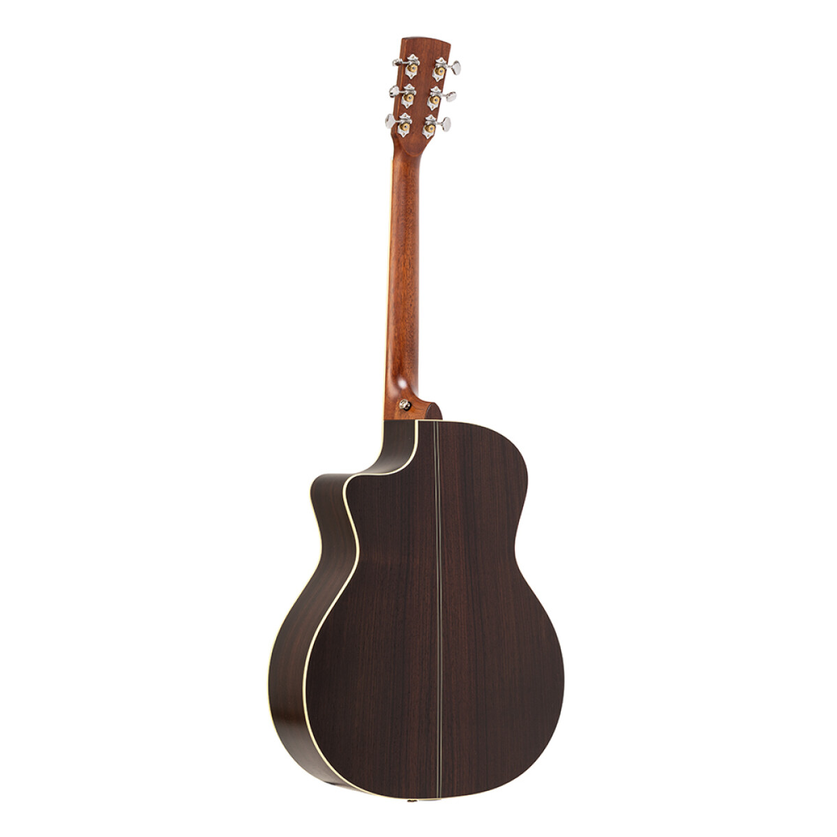 Alle Gitarren der Crafter ES-Serie werden in Korea handgefertigt. Dank dem vollmassiven Korpus mit Decke aus Sitka-Fichte bieten die Instrumente einen vollen und klaren Klang. Jedes Instrument ist mit einem DS-2 Preamp-System ausgestattet, welches mit einem Schwanenhals-Kondensatormikrofon und einem Undersattel Piezo Tonabnehmer arbeitet. Die Kontrolleinheit für das Preamp-System, sowie der Stealth Tuner sind im Klangloch angebracht - das sieht nicht nur schön aus, sondern hilft dabei, dass die vollmassive Zarge frei schwingen kann. Jede Gitarre der ES-Serie wird mit einem Crafter Gigbag ausgeliefert.