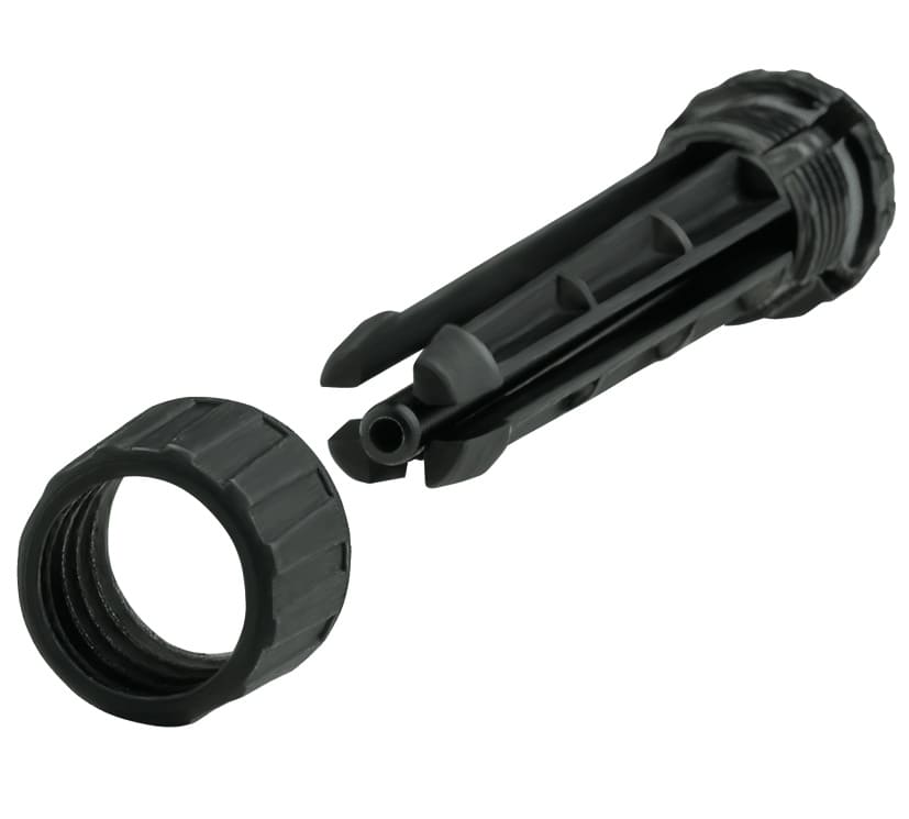 Kompakter 4-Fuß-Flötenständer für Sopran- und Piccoloflöten. Kunststoffkegel mit Stahlkern, Instrumentenhalter-ø 6,5 mm. Der Ständer passt zusammengelegt in jede Hemd-, Hosen- oder Jackentasche.