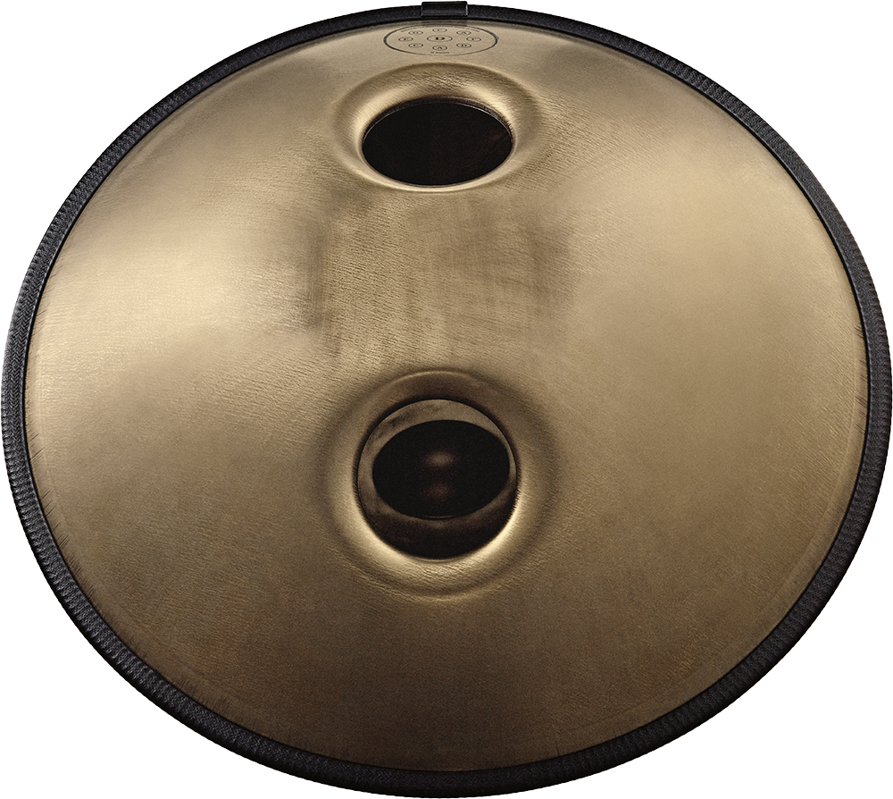 Die Meinl Sonic Energy Sensory Handpan wird mit größter Sorgfalt und Präzision aus hochwertigem Edelstahl von Hand gefertigt. Auf diese Weise können Sie ihr himmlische, raumfüllende Klänge entlocken. Das attraktive Vintage-Gold-Finish fügt sich harmonisch ins Gesamtbild ein und macht schon vor dem Spielen auf sich aufmerksam. Diese Sensory Handpan besitzt einen Durchmesser von 22" und ist auf die beliebte D-Amara-Skala (A4/a' 440 Hz) mit 9 Tönen gestimmt. Jeder kann dieses Instrument spielen und auch ohne Vorkenntnisse tolle Klänge erzeugen, denn alle Töne klingen harmonisch zueinander. Der angenehm tiefe Grundton in der Mitte wird von acht Tonfeldern umgeben, die einen reinen und beruhigenden Klang erzeugen. Auf der Unterseite der Sensory Handpan befinden sich zwei Schalllöcher, die in entgegengesetzte Richtungen zeigen, um sowohl dem Spieler als auch den Zuhörern ein realistisches Klangbild zu liefern.