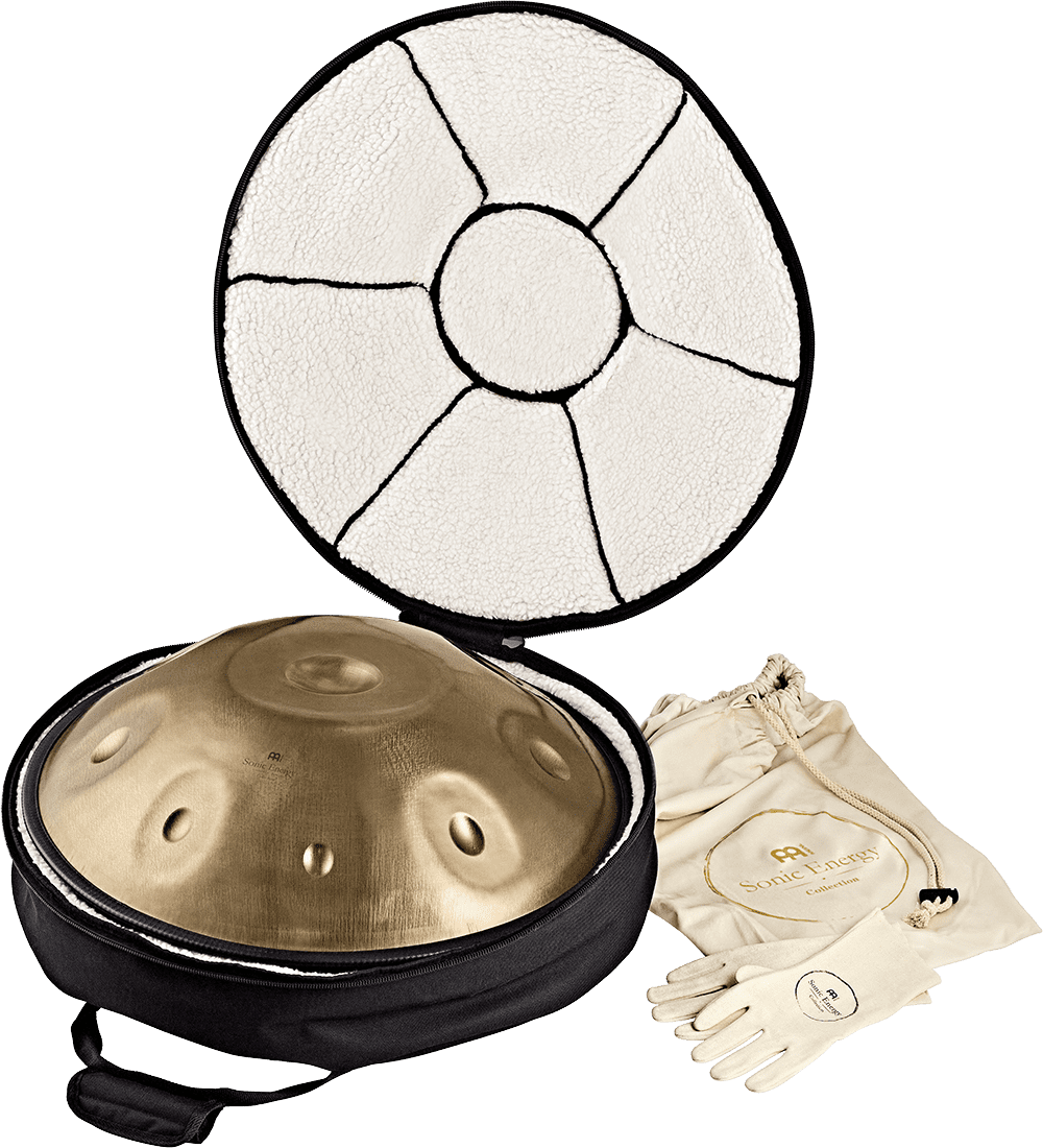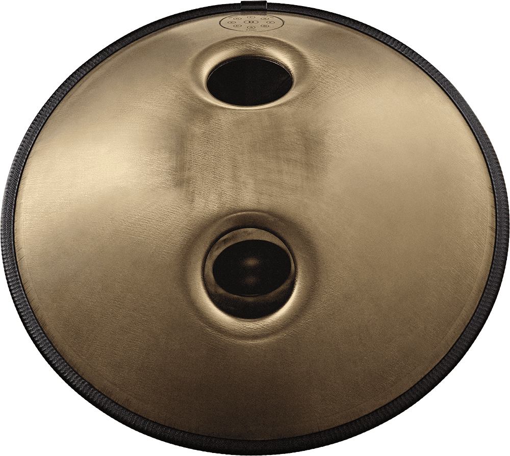 Die Meinl Sonic Energy Sensory Handpan wird mit größter Sorgfalt und Präzision aus hochwertigem Edelstahl von Hand gefertigt. Auf diese Weise können Sie ihr himmlische, raumfüllende Klänge entlocken. Das attraktive Vintage-Gold-Finish fügt sich harmonisch ins Gesamtbild ein und macht schon vor dem Spielen auf sich aufmerksam. Diese Sensory Handpan besitzt einen Durchmesser von 22" und ist auf die beliebte D-Amara-Skala (A4/a' 440 Hz) mit 9 Tönen gestimmt. Jeder kann dieses Instrument spielen und auch ohne Vorkenntnisse tolle Klänge erzeugen, denn alle Töne klingen harmonisch zueinander. Der angenehm tiefe Grundton in der Mitte wird von acht Tonfeldern umgeben, die einen reinen und beruhigenden Klang erzeugen. Auf der Unterseite der Sensory Handpan befinden sich zwei Schalllöcher, die in entgegengesetzte Richtungen zeigen, um sowohl dem Spieler als auch den Zuhörern ein realistisches Klangbild zu liefern.