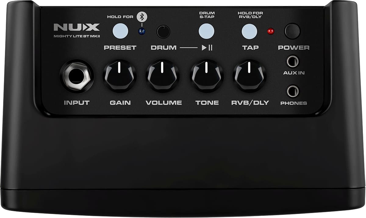 Der kompakte NUX Mighty Lite BT MKII Desktop Amp bietet eine Vielzahl von Effekten für E-Gitarre und Bass, einschließlich Amp Modeling und Cabinet IRs. Außerdem verfügt er über Akustik-Amp-Modeling und Akustik-IRs, mit denen sich Akustikgitarrensounds simulieren lassen. Zusätzlich lassen sich IRs von Drittanbietern über die Mighty Editor-Software laden, die unzählige Klangoptionen bieten. Der NUX Mighty Lite BT MKII ist ein tragbarer Mini-Verstärker. Er kann mit dem mitgelieferten 9-Volt-Netzteil oder mit 6 x AA-Batterien betrieben werden.