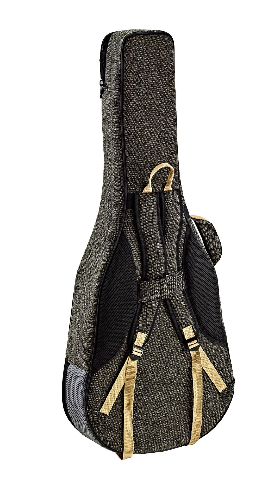 Die Ortega Premium SOFT CASES werden mit einer Oberfläche aus Leinen/ Baumwolle und Inlays aus echten Veloursleder gefertigt. Die 22mm (0.86“) starke Polsterung aus Kaltschaum wird von einem gehärteten Kunststoffrahmen (aus Polyethylen) gestützt. Die mit schwarzem Samt gefütterte Innenseite enthält außerdem eine Stütze für den Instrumentenhals mit Klettverschluss. Die Außenseite weist einen strapazierfähigen Reisverschluss, komfortable und verstellbare Schultergurte, einen mit Veloursleder überzogenen Tragegriff sowie ein Zubehörfach.